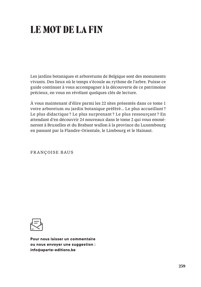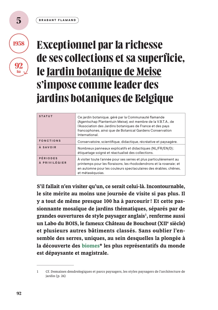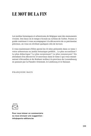 Véritables observatoires de diversité végétale, les arboretums et jardins botaniques de Belgique sont des lieux propices à la détente, à la découverte, au ressourcement. Dans ce premier tome, voici une sélection de 22 sites très variés, tous ouverts au public. Des plus emblématiques aux moins connus, parfois mystérieux ou grandioses, ils constituent un vrai tour du monde des espèces végétales. Dans une approche à la fois scientifique, historique, culturelle, agrémentée de régulières touches naturalistes chères à l’auteure, ce guide vous emmène aux quatre coins de la Belgique, dans une ode au végétal richement illustrée de photos et où l’arbre tient une place centrale.